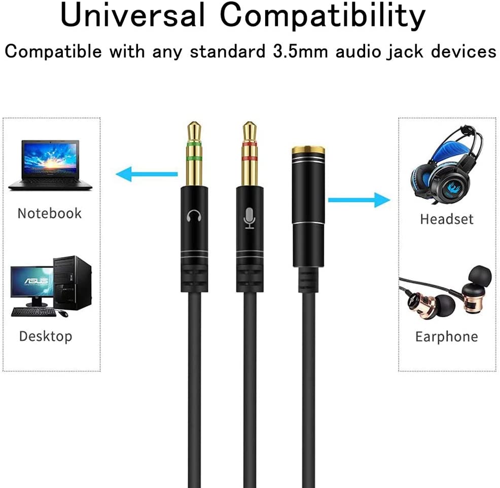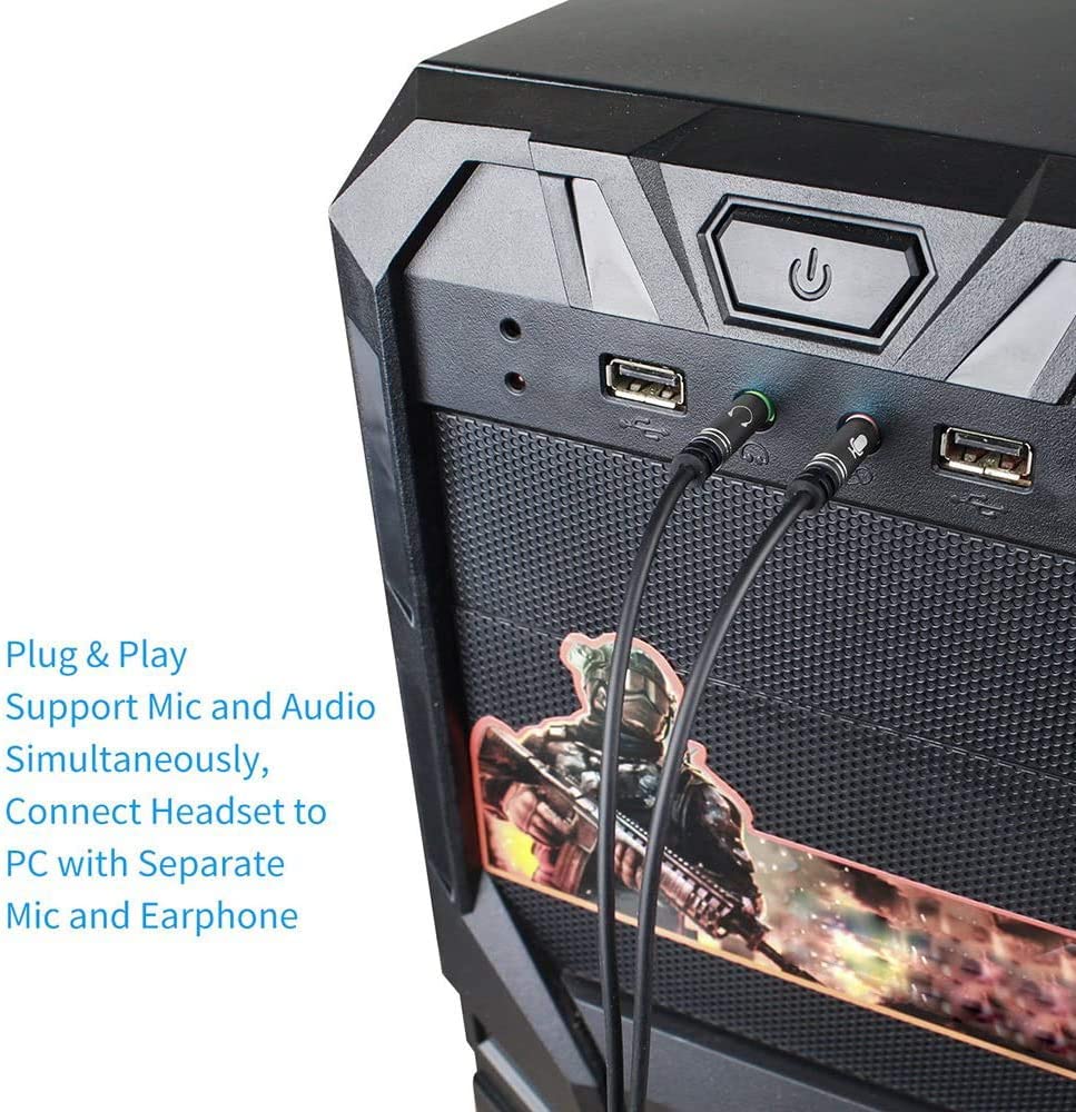 Compatible avec tout ordinateur PC doté de deux prises jack (MIC + Audio) de 3,5 mm (1/8 ") - Fonctionne avec la plupart des casques pour smartphone et stéréo dotés d'un port de 3,5 mm